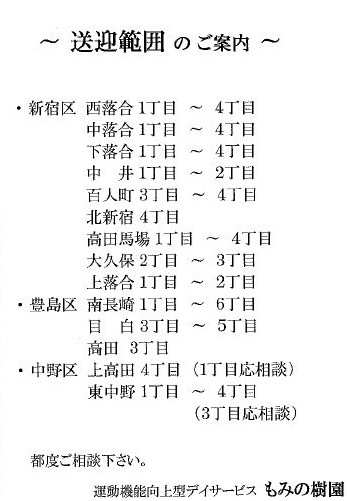 [デイサービスセンター もみの樹園] · デイサービス 空き 新宿区 上落合(介護・リハビリ ライフ応援)サイト![デイサービスセンター もみの樹園] · デイサービス 空き 豊島区 南長崎(介護・リハビリ ライフ応援)サイト![デイサービスセンター もみの樹 ... |